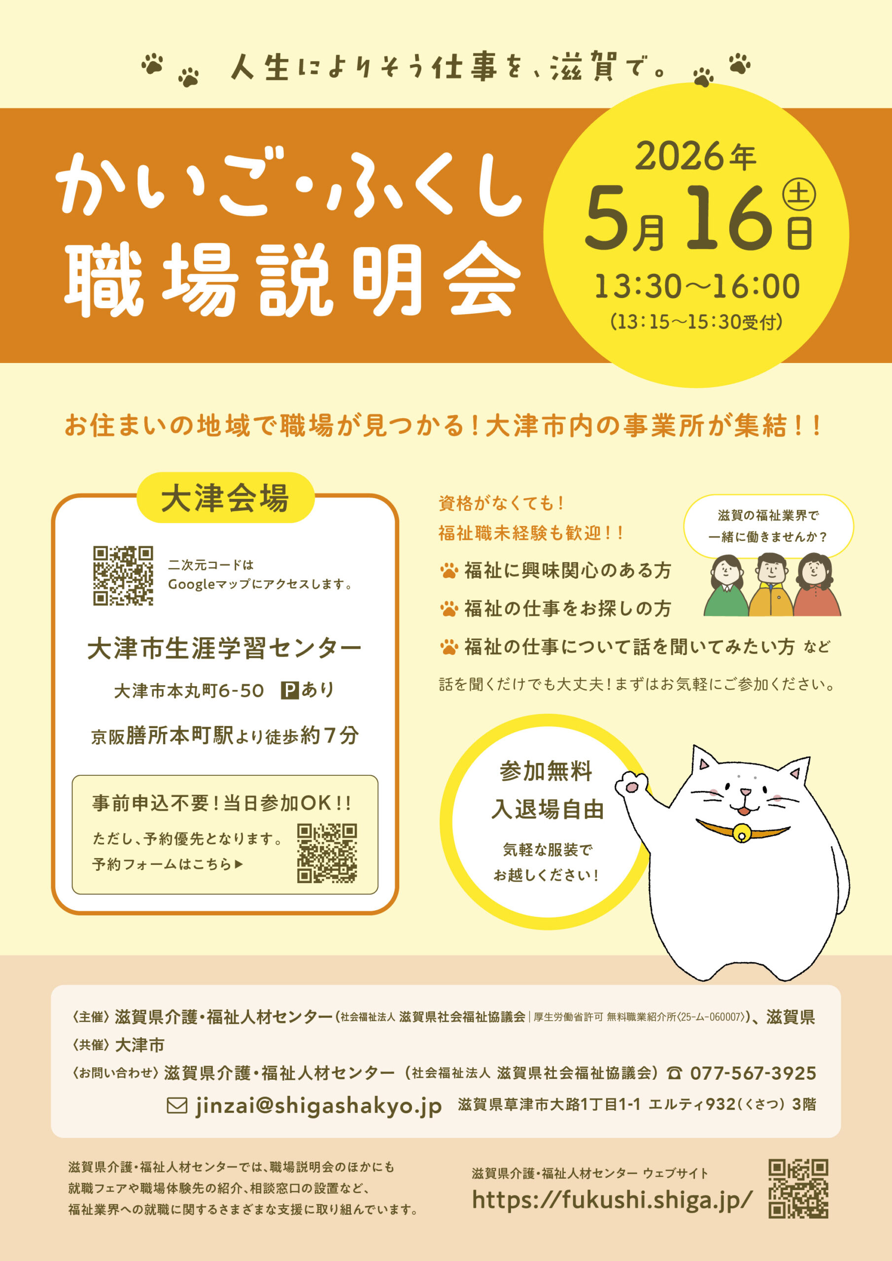 【受付中!】大津圏域「かいご・ふくし職場説明会」@生涯学習センター 5/16(土)開催